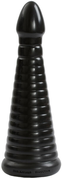 The Intimidator is a XXL anal dildo from the TitanMen collection. The black dildo has a pointy tip and is provided with a ribbed structure on the entire shaft. The wide base has a round opening at the bottom, so you can use it with Vac-U-Lock strap-ons. The Intimidator is made of PVC and feels smooth and form. Use it in combination with your favorite water-based anal lubricant and go for great ple