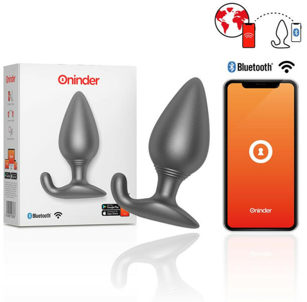 Oninder análvibrátor (fekete) (APP-os). Különleges, metálos színvilágú, kiváló tulajdonságokkal rendelkező, applikációval is vezérelhető vibrációs fenékdugó. Vezérlése az Oninder applikációval is lehetséges, mely egy angol nyelvű, mindkét nagy platformra elérhető ingyenes program, amivel távolról is vezérelhető az eszköz, de irányíthatjuk zenével, vagy a képer