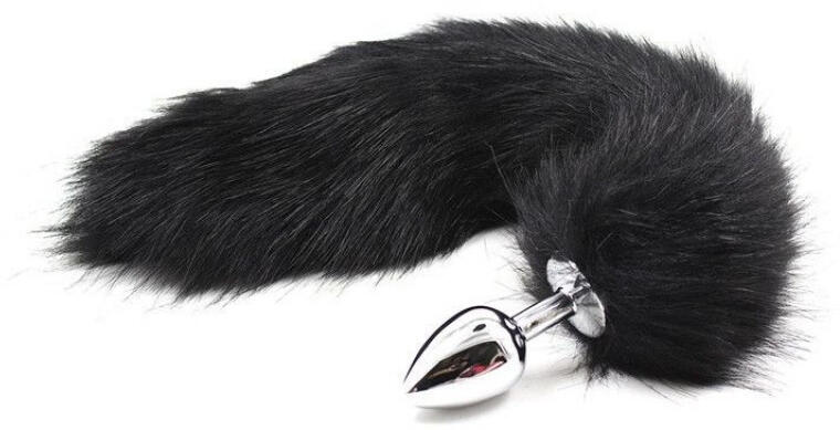 Fém anál dildó, rókafarokkal (ezüst/fekete) Különleges, fémből készült fenékdugó, melynek végéből egy meglehetősen hosszú, dús rókafarok lóg ki. A fenékdugó behelyezhető hossza: 6 cm Legnagyobb átmérője: 2,7 cm A rókafarok hossza: kb. 38 cm Anyaga: fém, farok szintetikus anyagból készült
