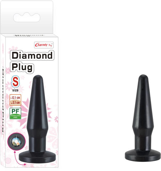 Diamond kezdő anál kúp - fekete Anál szexben kezdőknek ajánlott kúpos kényeztető rugalmas anyagból, alján csillogó kővel. Alján levő kis talp segítségével könnyen kézbe vehető és felhelyezve meggátolja a be és a kicsúszást a kéjnyílásból. Használatához anál síkosító vagy szilikonos síkopsító ajánlott! Tulajdonságok: Teljes hossza 12,1 cm átmérője 1,2-2,5