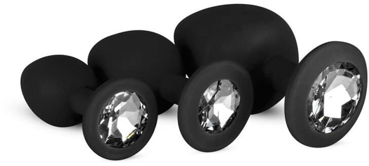 Gyémántos csillogású kövekkel díszített, 3 részes análkúp szett, 3 különböző méretű anál tágítóval, mellyel fokozatosan tágíthatod popsidat, hogy igazán élvezetes legyen az anál szex! Miért jó? Szemkápráztat ó, gyémánt hatású kövel díszít - igazi ékszer a popsiban 3 eltérő méret - fokozatos, kíméletes anál tágítás különleges, matt hatású, rugalmas