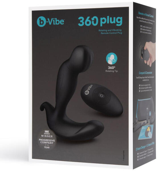 Double the sensation for heart pounding stimulation. The 360 Plug puts pleasure in your palm with remote controlled vibration and 360 degree rotation settings, a smooth silicone body, and simultaneous prostate and perianal pleasure. 360° Rotating tip for phenomenal prostate playVibrations for profound perianal pleasure6 Rotation modes6 Vibration patterns in 6 intensity levelsErgonomic shape for a