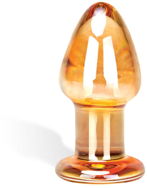 GLAS Over Easy - üveg anál dildó (arany) Ragyogó színben pompázó, gyönyörű műalkotás és klasszikus tágító análkúp egyben, törhetetlen üvegből, sima felszínnel! Kiváló minőségű, fúvott, vastag üvegből készült anál dildó, különleges arany színben, kúpos, anatómiailag ideális formával, hangsúlyos, elkeskenyedő véggel, biztonságos, kiszélesedő talppal. Ma