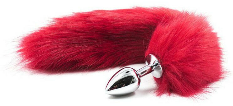 Fém anál dildó, rókafarokkal (ezüst/piros) Különleges, fémből készült fenékdugó, melynek végéből egy meglehetősen hosszú, dús rókafarok lóg ki. A fenékdugó behelyezhető hossza: 6 cm Legnagyobb átmérője: 2,7 cm A rókafarok hossza: kb. 38 cm Anyaga: fém, farok szintetikus anyagból készült