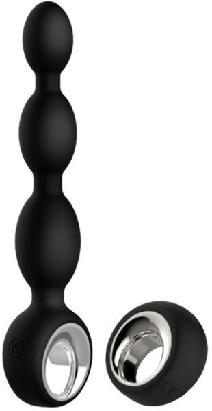 Midnight Magic Dione vibrációs anál gyöngysor, távirányítóval Dombocskás elemekből álló, anál izgatásra tervezett vibrációs eszköz, mely akár kezdőknek is jó szolgálatot tehet. Váza igen rugalmas, hajlékony, felülete selymes tapintású szilikon. A dombok kicsit puhának mondhatók. A vibrációs motor az alsó dudorban kapott helyet, de erős, közepes tónusú rezgései b