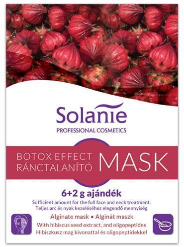 Solanie Alginát Botox Effect Ránctalanító maszk 6+2gr PROFESSZIONÁLIS TERMÉK! KIZÁRÓLAG KÉPZETT SZAKEMBER HASZNÁLHATJA! Lakossági felhasználóként történő vásárlás esetén kérje kozmetikus szakember segítségét! Az esetleges nem hozzáértő használatból eredő károkért, sérülésekért felelősséget nem tudunk vállalni! Hibiszkusz mag kivonattal és oligopeptidekkel