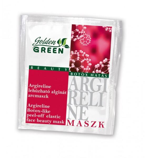Golden Green Argireline botox-hatású lehúzható alginát pormaszk 6g- Botox hatású, bőrmegújító és regeneráló tulajdonságokkal rendelkező intenzív ránctalanító pakolás - Gátolja a mimikai izmok összehúzódásához szükséges ngerületátvitelt - Csökkenti a ráncok mélységét és megakadályozza újabbak kialakulását - Rendszeres használatával a mimikai ráncok mélys