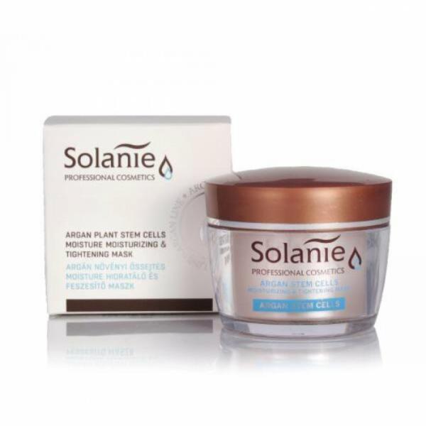 ArcápolásSolanie Argán Növényi Őssejtes Moisture hidratáló és feszesítő maszk, 50 ml- Mélyhidratáló feszesítő maszk, mely segíti a bőr sejtjeinek megújulását és a bőr regenerációját - Azonnali nedvességpótlást biztosít - Magas aloe Vera tartalma gyorsan és látványosan tölti fel a dehidratált bőrt - Ásványi anyagokkal, viatminokkal, aminosavakkal és enzimekkel