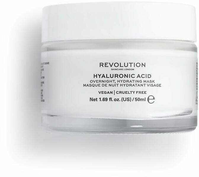 A hialuronsav éjszakai arcmaszk alvás közben tökéletesen hidratálja a bőrt. A bőrt egész éjjel intenzíven ápolja, és reggelre az arc természetesen fényes, és kellően táplált lesz. Ismeri más Revolution Skincare arcmaszkokat? Charcoal: tisztító maszk Pink Clay: méregtelenítő maszk Hyaluronic acid: hidratáló maszk Warming Gel: Tápláló maszk