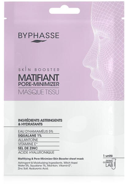 A BYPHASSE Mattifying & Pore-Minimizer Skin Booster lapmaszk segít csökkenteni a bőr fényét. Formulája összehúzó összetevőket tartalmaz, amelyek segítenek normalizálni a faggyúkiválasztást és szabályozni a pórusok méretét. Kiszerelése: 18ml A BYPHASSE Mattifying & Pore-Minimizer Skin Booster lapmaszk segít csökkenteni a bőr fényét. Formulája összehúzó összet