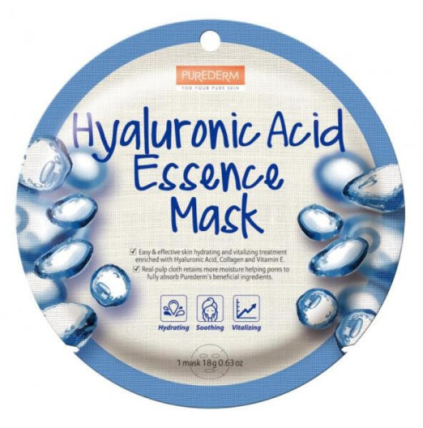 PureDerm Hialuron hidratáló és bőrfeltöltő circle fátyolmaszk, 1 db - Hidratáló és bőrfeltöltő hatású egyszerhasználatos fátyolmaszk arckezelésekhez - A bőr számára nélkülözhetetlen hialuronsav tartalmával megköti a bőrben található nedvességet és hidratálja a bőr rugalmasságáért felelős elasztikus rostokat - Hozzáadott kollagént tartalmaz, mely feszesíti, m