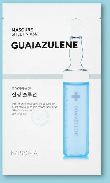 Mascure Calming Solution Sheet Mask Guaiazulene – egy tissue maszk, amely egyszerre 3 fontos funkciót lát el: regeneráció, gyulladáscsökkentés és hidratálás. Fő összetevője a guaiazulén, amely számos illóolajban jelen lévő kozmetikai adalékanyag. Gyorsan és hatékonyan csillapítja a bőrirritációkat, felgyorsítja a sejtek megújulását, intenzíven táplál, feltölti ne