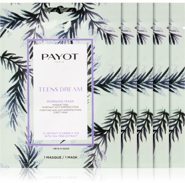 Payot Morning Mask Teens Dream, 5 db, fátyolmaszkok nőknek, Úgy érzi, hogy az arcbőre nincs igazán formában, és többre van szüksége, mint a krémek által nyújtott ápolásra? A minőségi Payot Morning Mask Teens Dream arcmaszk tökéletes kiegészítője bőrápolási rutinjának – kényezteti és intenzív ápolásban részesíti bőrét, valamint azonnal szebbé varázsolja. Tula