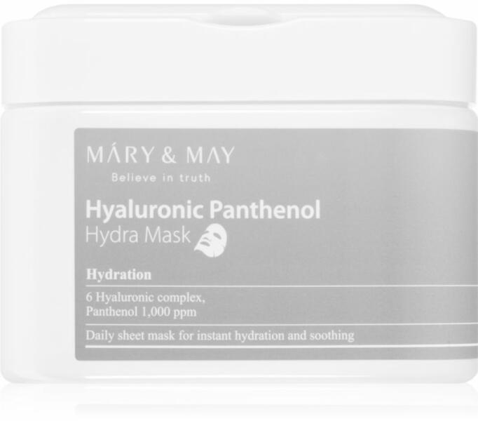 MARY & MAY Hyaluronic Panthenol Hydra Mask, 30 db, fátyolmaszkok nőknek, Úgy érzi, hogy az arcbőre nincs igazán formában, és többre van szüksége, mint a krémek által nyújtott ápolásra? A minőségi MARY & MAY Hyaluronic Panthenol Hydra Mask arcmaszk tökéletes kiegészítője bőrápolási rutinjának – kényezteti és intenzív ápolásban részesíti bőrét, valamint