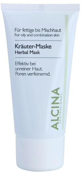 Az Alcina gyógynövénymaszk a zsíros és vegyes bőr speciális igényeire készült, amelyet ápol és tisztít. Eltávolítja a bőrről a felesleges faggyút, használata után az arca tisztán ragyog, ugyanakkor vonzóan matt lesz. Aktív anyagok: kaolin, zsálya, levendula, glicirretinsav.