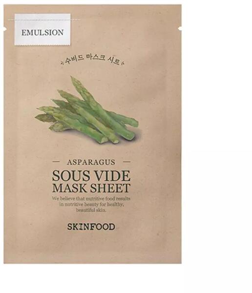 A SKINFOOD Sous Vide Mask Sheet 20g tízféle arcmaszk lap, amely Sous Vide módszerrel kivont élelmiszer-tápanyagokat tartalmaz. A Sous Vide egy francia főzési módszer, amely során a vákuumcsomagolt élelmiszereket langyos vízben hosszú ideig melegítik. A zöldségeket kívül-belül egyenletesen, akár 72 órán keresztül, pontos hőmérsékleten főzi meg. Ez a maszklemez-készlet a