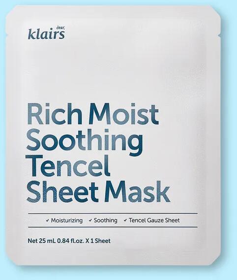 A Rich Moist Soothing Tencel Sheet Mask kiegyenlíti az arcbőrt, csillapítja a gyulladást, és megszünteti a szárazság és feszülés kellemetlen érzését ❤️ A koreai Dear, Klairs márka kozmetikai terméke Centella asiatica kivonatot tartalmaz. Az egyik legerősebb természetes antioxidáns, amely serkenti a bőrsejtek kollagénrost-termelését, ami rugalmasabbá és feszesebbé tesz