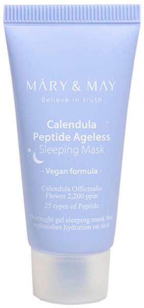 A Mary&May Calendula Peptide Ageless Sleeping Mask körömvirág szirmokkal erőteljes nyugtató hatású, enyhíti a viszketést és a bőrpírt, serkenti az irritációk gyógyulását. Általános feszesítő hatású, növeli a szövetek rugalmasságát és feszességét, feszesít és lassítja az öregedési folyamatokat. Segít csökkenteni a kifejezett ráncok és bőrredők mélység