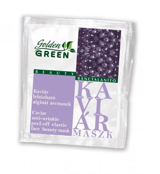 Golden Green Kaviár Ránctalanító lehúzható alginát pormaszk 6 g- sejtmegújító, regeneráló, ránctalanító, hidratáló - Ránctalanító lehúzható alginát maszk - A kaviár-kivonat proteineket, esszenciális aminosavakat, vitaminokat (A, E, D, B-komplex), ásványi anyagokat (oligoelemek- jód, foszfor cink, magnézium, ) és nyomelemeket tartalmaz, amelyek a sejtvédelmet, sejtmeg