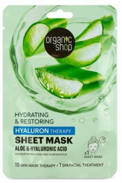Arcápolás Organic Shop hidratáló és helyreállító fátyolmaszk aloe verával és hialuronsavval, 25g - Azonnali hidratálást biztosít és ragyogóvá teszi a bőrt- Segít, hogy a bőr friss és tökéletesen hidratált legyen- Hatékonyan pótolja a bőr folyadékvesztését és javítja annak textúráját- Bársonyos és kellemes tapintású bőrt eredményez- Az organikus aloe felszab