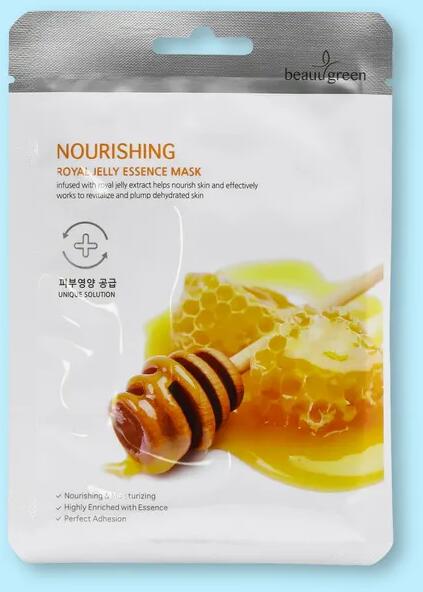 Tápláló szövetes arcmaszk méhpempővel, hogy otthon is gondoskodjon a nagyszerű ápolásról?. A méhpempő kivonattal átitatott Beauugreen Royal Jelly Essence Mask segít táplálni a bőrt, hatékonyan regenerálja és feszesíti a kiszáradt bőrt?. Ezenkívül a méhpempő mélyen behatol a hámsejtekbe és táplálja azokat, így lassítja az öregedési folyamatot. Igazi táplálék a