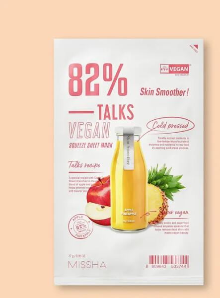 Milyen gyakran hallod, hogy a Missha egy új, klassz terméket hozott létre a reggeli rituálédhoz? Igen, újra boldoggá tesz minket ?! Ismerd meg az új maszkot ezúttal is Talks Vegan Squeeze Sheet Mask Skin Smoother, amely simítja, feszesíti és kiegyenlíti a bőr tónusát. A maszk esszenciája – egy szuperélelmiszer-levekből, kivonatból és ananászból álló koktél, amely egy AH