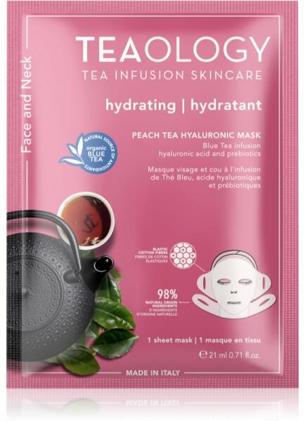 Teaology Face Mask Peach Tea Hyaluronic, 21 ml, fátyolmaszkok nőknek, Úgy érzi, hogy az arcbőre nincs igazán formában, és többre van szüksége, mint a krémek által nyújtott ápolásra? A minőségi Teaology Face Mask Peach Tea Hyaluronic arcmaszk tökéletes kiegészítője bőrápolási rutinjának – kényezteti és intenzív ápolásban részesíti bőrét, valamint azonnal szebb