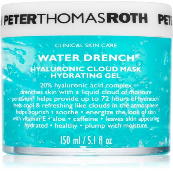 Peter Thomas Roth Water Drench Hyaluronic Cloud Mask Hydrating Gel, 150 ml, Arcmaszkok nőknek, Úgy érzi, hogy az arcbőre nincs igazán formában, és többre van szüksége, mint a krémek által nyújtott ápolásra? A minőségi Peter Thomas Roth Water Drench Hyaluronic Cloud Mask Hydrating Gel arcmaszk tökéletes kiegészítője bőrápolási rutinjának – kényezteti és intenzív ápol
