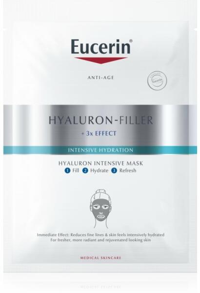 Eucerin Hyaluron-Filler + 3x Effect, 1 db, fátyolmaszkok nőknek, Úgy érzi, hogy bőre jobb formában is lehetne, és többre van szüksége, mint amit a krémek nyújtani tudnak? A minőségi Eucerin Hyaluron-Filler + 3x Effect arcmaszk tökéletes kiegészítője bőrápolási rutinjának – kényezteti és intenzív ápolásban részesíti bőrét, valamint azonnal szebbé varázsolja. Tula