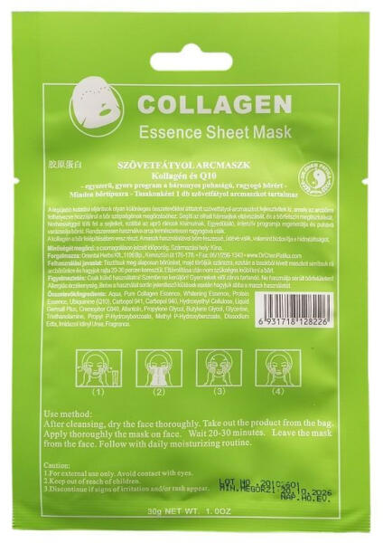 Egyszerű, gyors program a bársonyos puhaságú bőrért. 30 g-os szövetfátyol arcmaszk; Dr. Chen termék arcápoláshoz.
