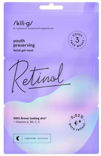 ArcápolásKili. g éjszakai arcgélmaszk retinollal, 3x7 ml . A retinol erejével a hatékony anti-aging bőrápolásért! - Retinol (A-vitamin) tartalmú gél arcmaszk, a feszes, ragyogó és hidratált bőrért - A maszk segít csökkenteni a finom ráncokat és a bőr láthatóan fiatalosabbá válik - A maszkot nagy molekulasúlyú hialuronsavval, glicerinnel, pantenollal (B5-vitamin) és she