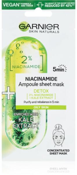 Garnier Skin Naturals Ampoule Sheet Mask, 15 g, Arcmaszkok nőknek, Úgy érzi, hogy bőre jobb formában is lehetne, és többre van szüksége, mint amit a krémek nyújtani tudnak? A minőségi Garnier Skin Naturals Ampoule Sheet Mask arcmaszk tökéletes kiegészítője bőrápolási rutinjának – kényezteti és intenzív ápolásban részesíti bőrét, valamint azonnal szebbé varázsolja