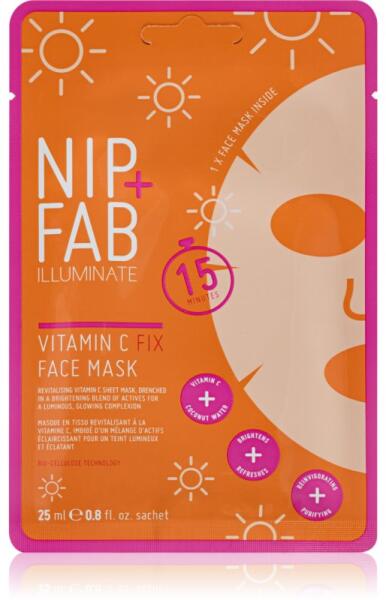 NIP+FAB Vitamin C Fix, 25 ml, fátyolmaszkok nőknek, Úgy érzi, hogy bőre jobb formában is lehetne, és többre van szüksége, mint amit a krémek nyújtani tudnak? A minőségi NIP+FAB Vitamin C Fix arcmaszk tökéletes kiegészítője bőrápolási rutinjának – kényezteti és intenzív ápolásban részesíti bőrét, valamint azonnal szebbé varázsolja. Tulajdonságok: mélyrehatóan