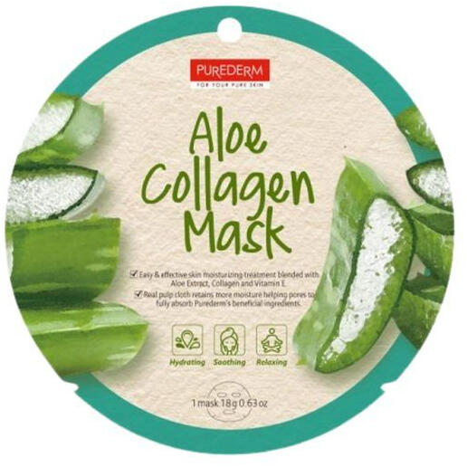 Hidratáló és bőrnyugtató hatású egyszer használatos fátyolmaszk arckezelésekhez. 1x20 g-os aloe vera fátyolmaszk; PureDerm termék arctisztításhoz.