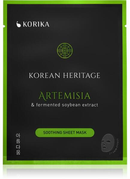 KORIKA Korean Heritage Artemisia & Fermented Soybean Extract Soothing Sheet Mask, 25 g, fátyolmaszkok nőknek, Úgy érzi, hogy az arcbőre nincs igazán formában, és többre van szüksége, mint a krémek által nyújtott ápolásra? A minőségi KORIKA Korean Heritage Artemisia & Fermented Soybean Extract Soothing Sheet Mask arcmaszk tökéletes kiegészítője bőrápolási rutinján
