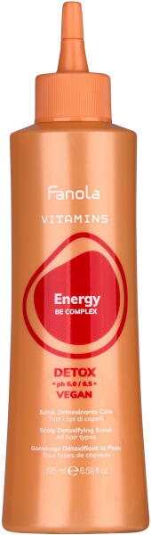 Fanola Vitamins Energy Scalp Detoxifying fejbőr radír, 195 ml - A Fanola krémes textúrájú Vitamins Energy Detox fejbőrradírja segít eltávolítani a szennyeződéseket a fejbőrről - Zsíros fejbőrre is ideális- Az egészséges, élettel teli fejbőr-érzetért Használata: - Masszírozza be körkörös mozdulatokkal a száraz fejbőrre - Hagyja hatni 3 percig majd emulgeálja fel egy