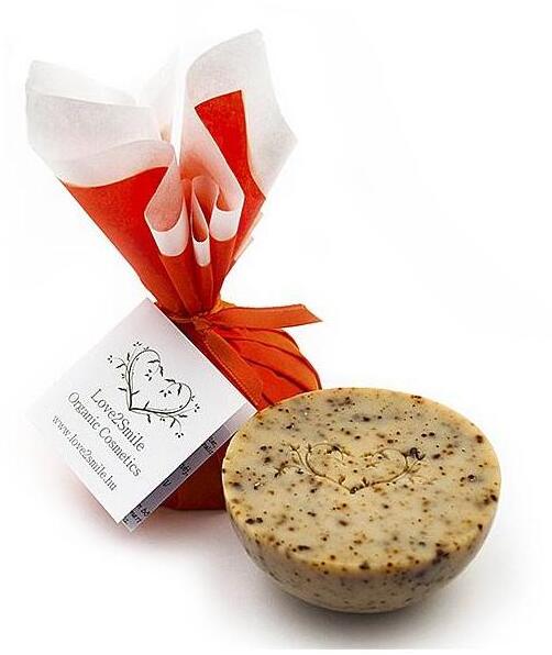 Bőrbarát natúr szappan kakaóvajjal és kakaóbabhéjjal Kíméletes eljárással készült növényi összetevőkkel Alkalmazható grízes, kevert, zsíros és normál bőrön is Kakaóbabhéj őrleményt tartalommal közepes bőrradírozó hatás Lágyabban radírozó töret a kávé őrleményéhez képest