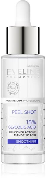 Eveline Cosmetics Serum Shot 15% Glycolic Acid, 30 ml, arc szérumok unisex, A(z) Eveline Cosmetics Serum Shot 15% Glycolic Acid tisztító peeling mélyreható és hámlasztó hatásának köszönhetően segít megelőzni a bőrhibák megjelenését. Nemcsak megszabadítja a bőrt az összes szennyeződéstől, hanem eltávolítja az elhalt hámsejteket is, amelyek hajlamosak eltömíteni a póru