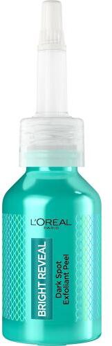 Pattanások után maradt sötét foltok és nyomok gyötrik? Szabaduljon meg tőlük a L'Oréal Paris Bright Reveal Dark Spot Exfoliant Peel bevált gyengéd hámlasztójával, amely bőrélénkítő hatású niacinamidot és 25% AHA-, BHA-, PHA-savat tartalmaz a hatékony hámlasztásért és bőrmegújításért.