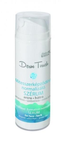 ArcápolásGolden Green Derm Touch mitesszerképződést normalizáló szérum, 150 ml- Pattanásos, szeborreás, zsíros bőrre ajánljuk - Arcra, hátra is használható - Szalicilsavat, teafaolajat, niacinamidot, élesztőt, vadgesztenye kivonatot, koffeint, biotint tartalmazó gélszérum - Gátolja a faggyú termelődését és mitesszerek kialakulását - Mérsékli a gyulladást, segíti a