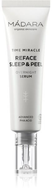 Mádara Time Miracle Reface Sleep & Peel, 30 ml, arc szérumok nőknek, A kiváló minőségű Mádara Time Miracle arcszérum magas aktívanyag tartalmú készítmény. Ennek köszönhetően a legfényűzőbb módon ápolja az arcbőrét. Tulajdonságok: finomít hatékonyan hidratál és táplál világosít erősíti az arckontúrt segít eltávolítani az arcbőr öregedésének látható