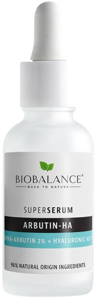 Bio Balance Arbutin-HA szuperszérum pigmentfoltok ellen A Bio Balance szérum 2% alfa-arbuntint és 2% 4D multi-molekuláris hialuronsavat, valamint 2% édesgyökér kivonatot tartalmaz, csökkenti a pigmentfoltokat, kiegyenlíti a bőr tónusát, ragyogóvá és dúsítóvá teszi a bőrt. Könnyű és folyékony textúra, amely gyorsan felszívódik. Dermatológiailag tesztelt formula. Alpha-Ar