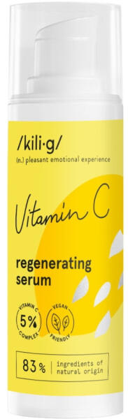 Kili. g regeneráló arcszérum C-vitaminnal, 50 ml - Még egy egész mezőnyi friss citrusfa sem tud ennyi energiát adni! - Ez a gyorsan felszívódó szépségszérum - a C- és E-vitamin, valamint a természetes hialuronsav koktélja - kiegyenlíti bőröd tónusát, egészségesebbnek tűnő textúrát és finom ragyogást kölcsönöz neki minden nap - A jobb hatás érdekében használd a /