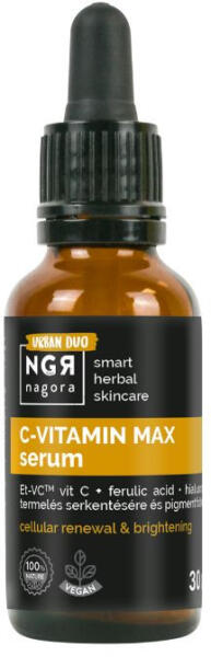 C vitaminos s zérum pigmentfoltok ellen Duo: stabil Et-VC TM C-vitamin + ferulinsav + bio csipkebogyó, bio homoktövis Funkció: Et-VC TM C-vitamin : 100% növényi eredetű, stabil C-vitamin, mely bizonyítottan akár 182,7%-kal növeli a hialuronsav-szintézist (hyaluron booster), 55,68%-kal csökkenti a sötét foltokat = hatékony pigmentfolt halványító ferulinsav : növeli a C-vitamin ha