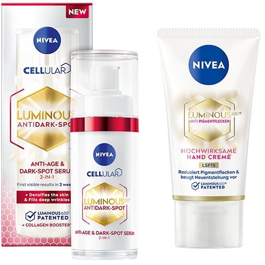 Nivea ajándék szett: Luminous ránctalanító szérum, 30 ml + Luminous kézkrém, 50 ml Hatékony megoldást keres a finom ráncok és pigmentfoltok leküzdésére? A 2-AZ 1-ben LUMINOUS630 Ránctalanító és Pigmentációs foltok 30 ml-es szérumból és a LUMINOUS630 Anti-spots Hand Creamből álló csomag jó csapatot alkot bőrének. A 2 az 1-ben ránctalanító és foltellenes szérum egy