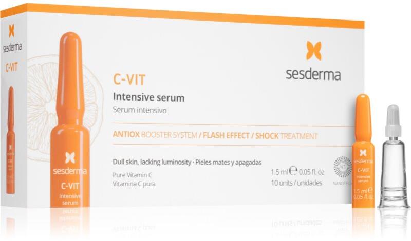 Sesderma C-Vit, 10x1,5 ml, arc szérumok nőknek, A kiváló minőségű Sesderma C-Vit arcszérum magas aktívanyag tartalmú készítmény. Ennek köszönhetően a legfényűzőbb módon ápolja az arcbőrét. Tulajdonságok: visszaadja az arcbőr üdeségét és fiatalos szépségét világosít egységesíti az arcbőr színárnyalatait hatékonyan hidratál és táplál erősíti az arckontú