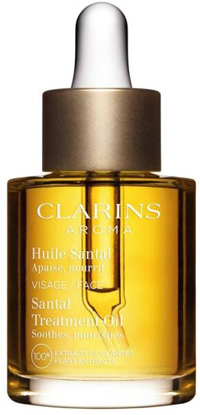 Clarins Santal Treatment Oil, 30 ml, Arcolajok nőknek, Úgy érzi, hogy bőrének többre van szüksége, mint amit a krémek nyújtanak? A minőségi Clarins Santal Treatment Oil arcolaj tökéletes kiegészítője bőrápolási rutinjának – extra táplálást biztosít és puhává teszi a bőrt. Tulajdonságok: regenerál és hidratál revitalizál és lassítja az arcbőr öregedési folya