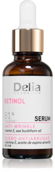 Delia Cosmetics Retinol Anti-Wrinkle Serum, 30 ml, arc szérumok nőknek, A kiváló minőségű Delia Cosmetics Retinol arcszérum magas aktívanyag tartalmú készítmény. Ennek köszönhetően a legfényűzőbb módon ápolja az arcbőrét. Tulajdonságok: segít eltávolítani az arcbőr öregedésének látható jeleit segít kisimítani a ráncokat és a finom szarkalábakat megelőzi a rá