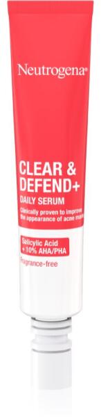 Neutrogena Clear & Defend+, 30 ml, arc szérumok nőknek, A kiváló minőségű Neutrogena Clear & Defend+ arcszérum magas aktívanyag tartalmú készítmény. Ennek köszönhetően a legfényűzőbb módon ápolja az arcbőrét. Tulajdonságok: javítja a bőrhibákat egységesíti az arcbőr színárnyalatait világosít csökkenti az akne tüneteit Összetétel: parfümmentes olajat n