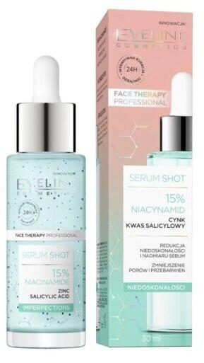 Megjegyzés: Ez a leírás automatikusan le lett fordítva magyarra. Az Eveline niacinamid széruma a tökéletes formula a bőr frissességének helyreállításához. A 15% niacinamid optimalizálja a faggyúmirigyeket, táplál és antibakteriális hatású. A bőr megvilágosodik és láthatóan táplált. A cink szűkíti a pórusokat és kiváló hatással van a pattanásos bőrre: regenerá